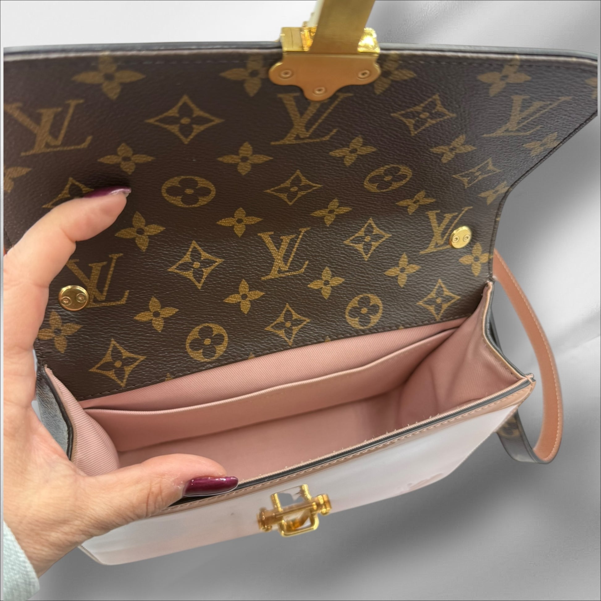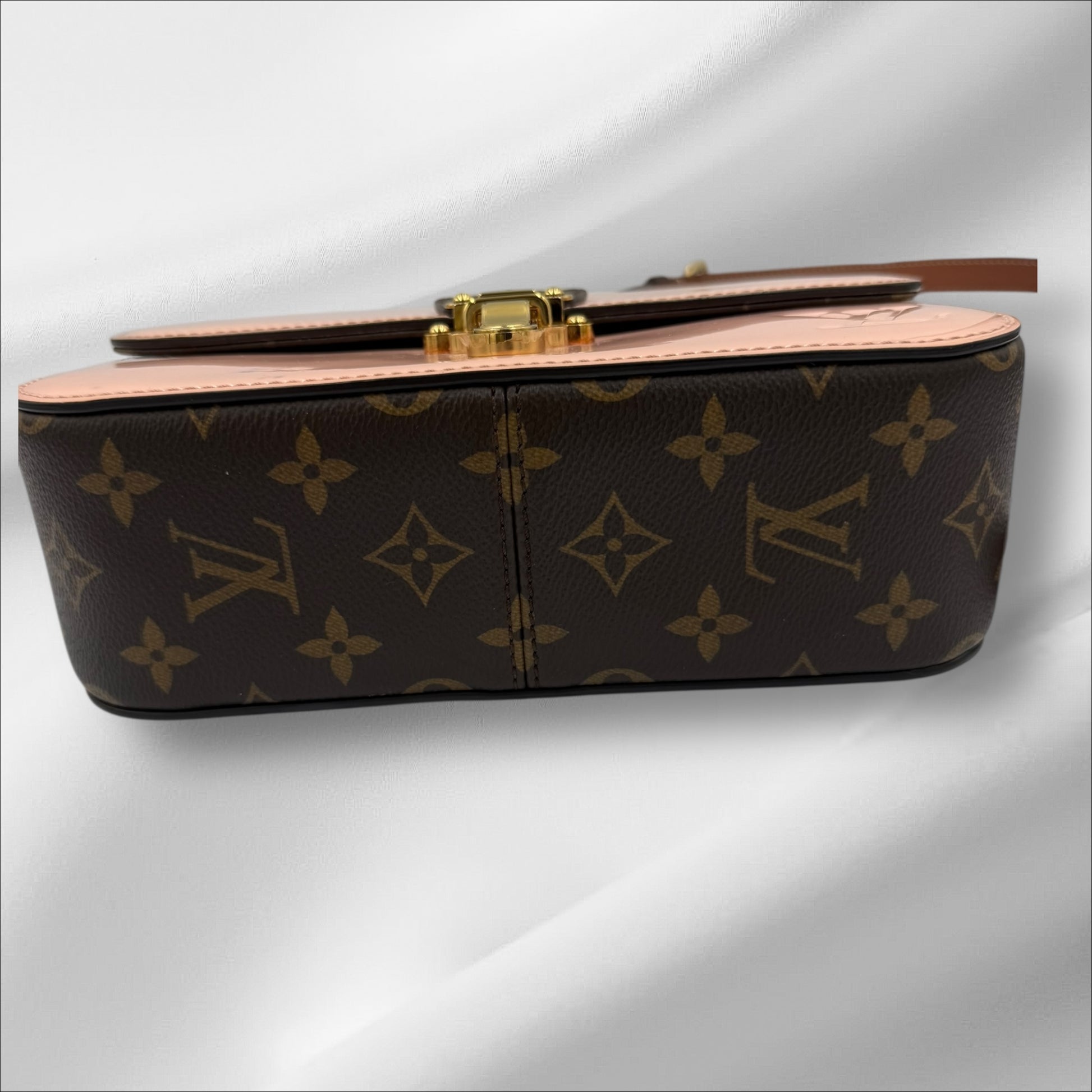 - Beautiful Balerine Pink patent leather with Monogram canvas.