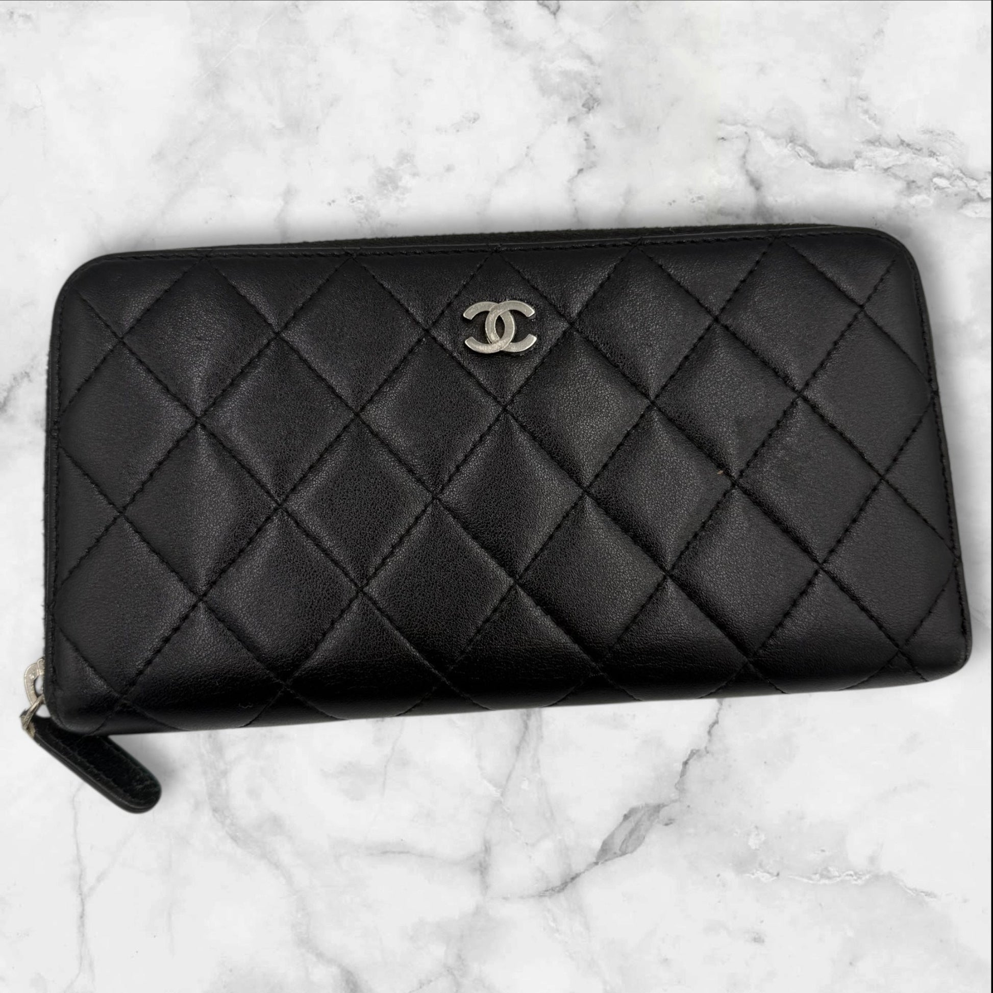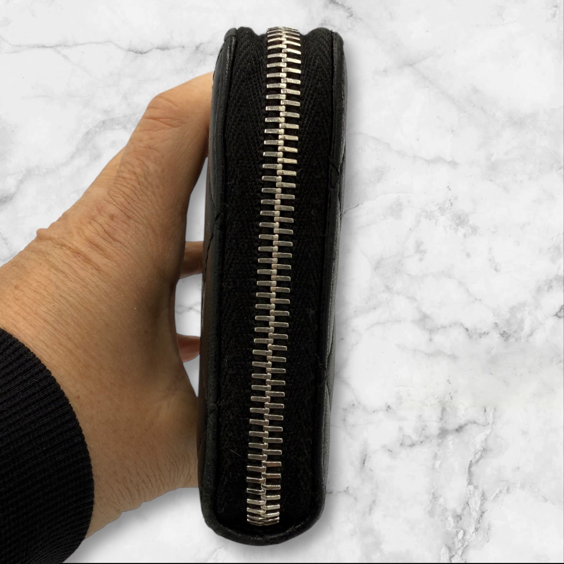 Chanel Black Classic Lambskin Zippy wallet with Silver Hardware