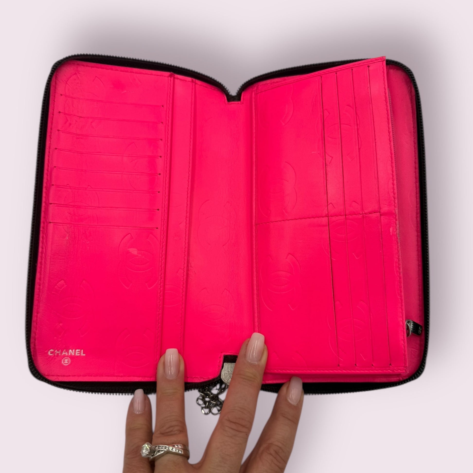 Chanel Cambon Line Zip Around Long wallet with Pink Interior