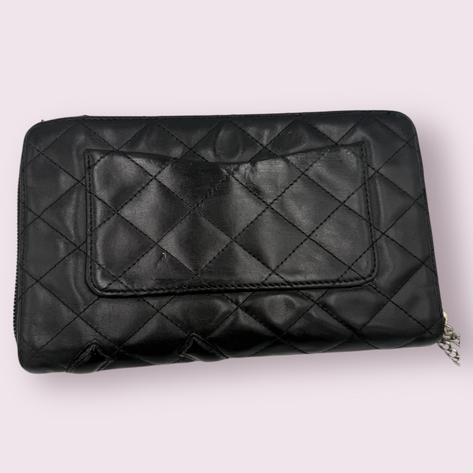 - Classic elegance meets modern flair with this authentic Chanel Cambon quilted lambskin wallet