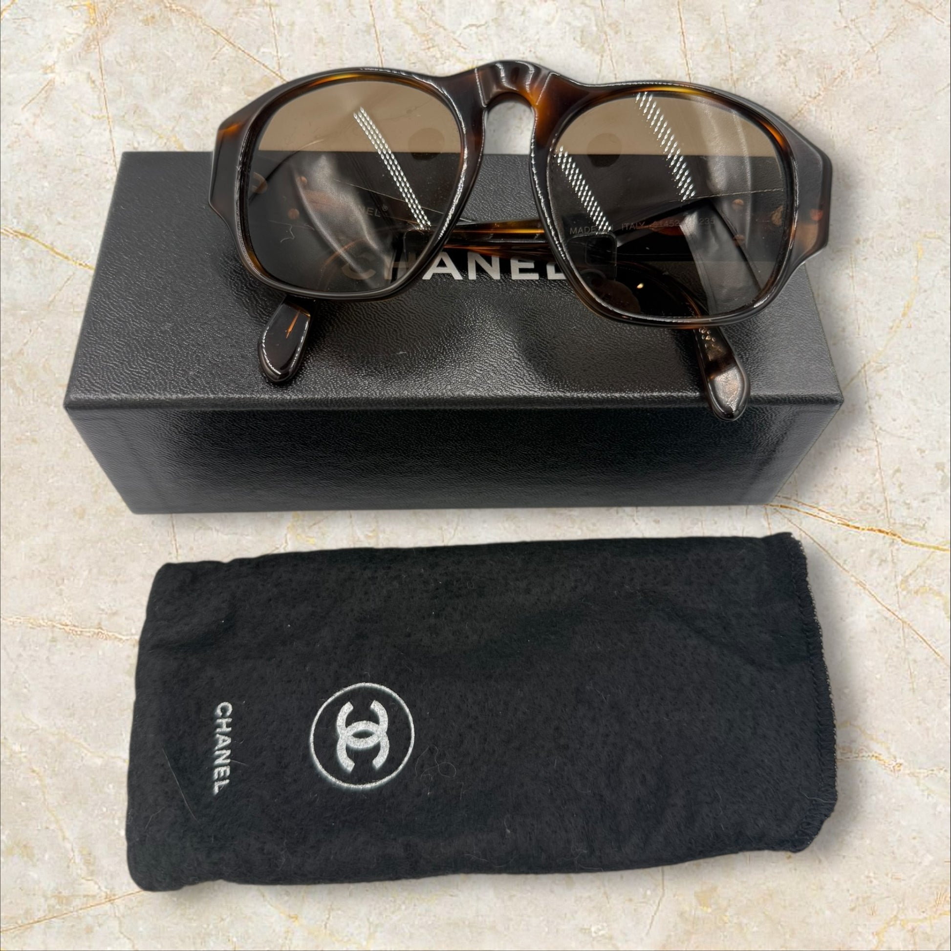 Chanel Coco Mark Brown Tortoise Shell Vintage Sunglasses with box