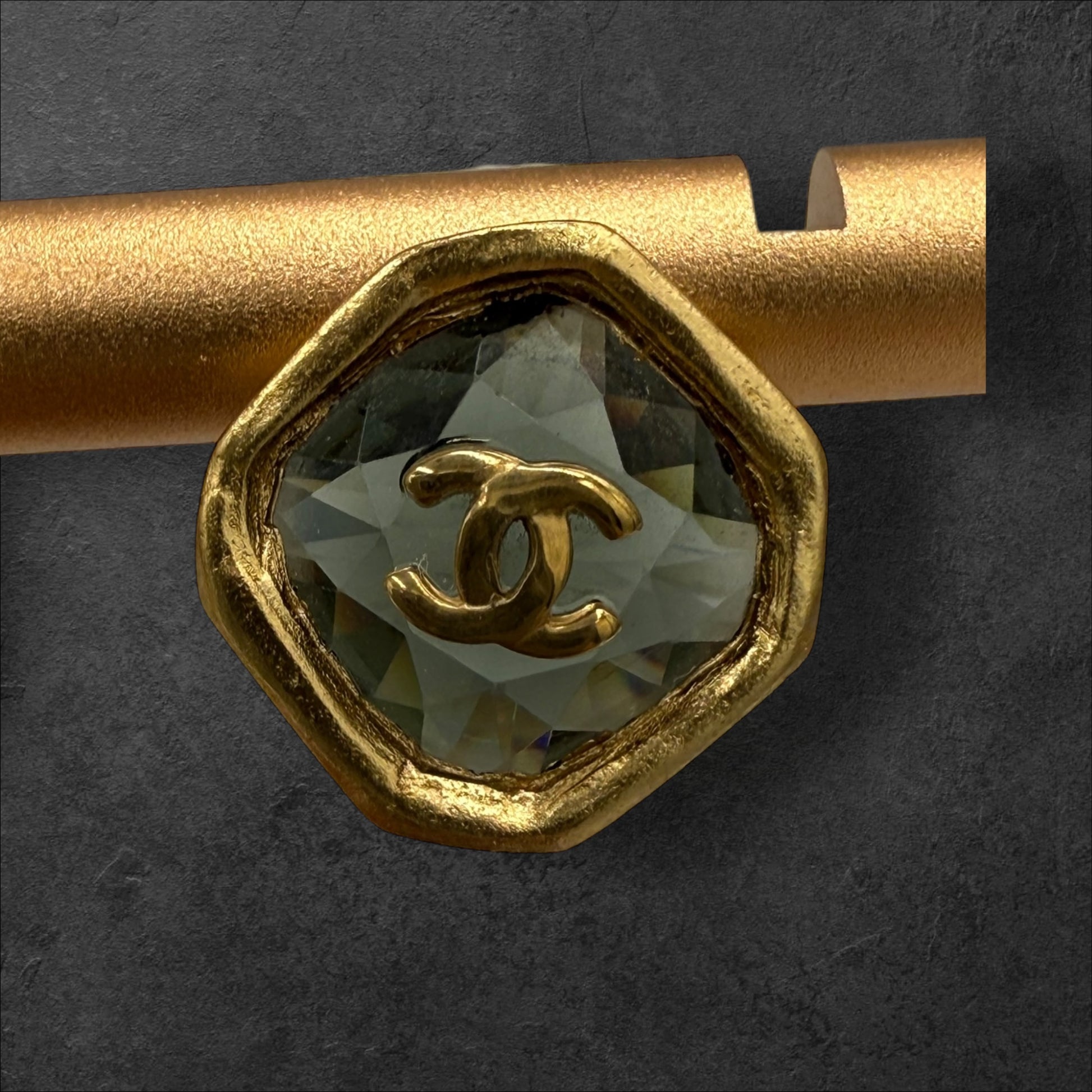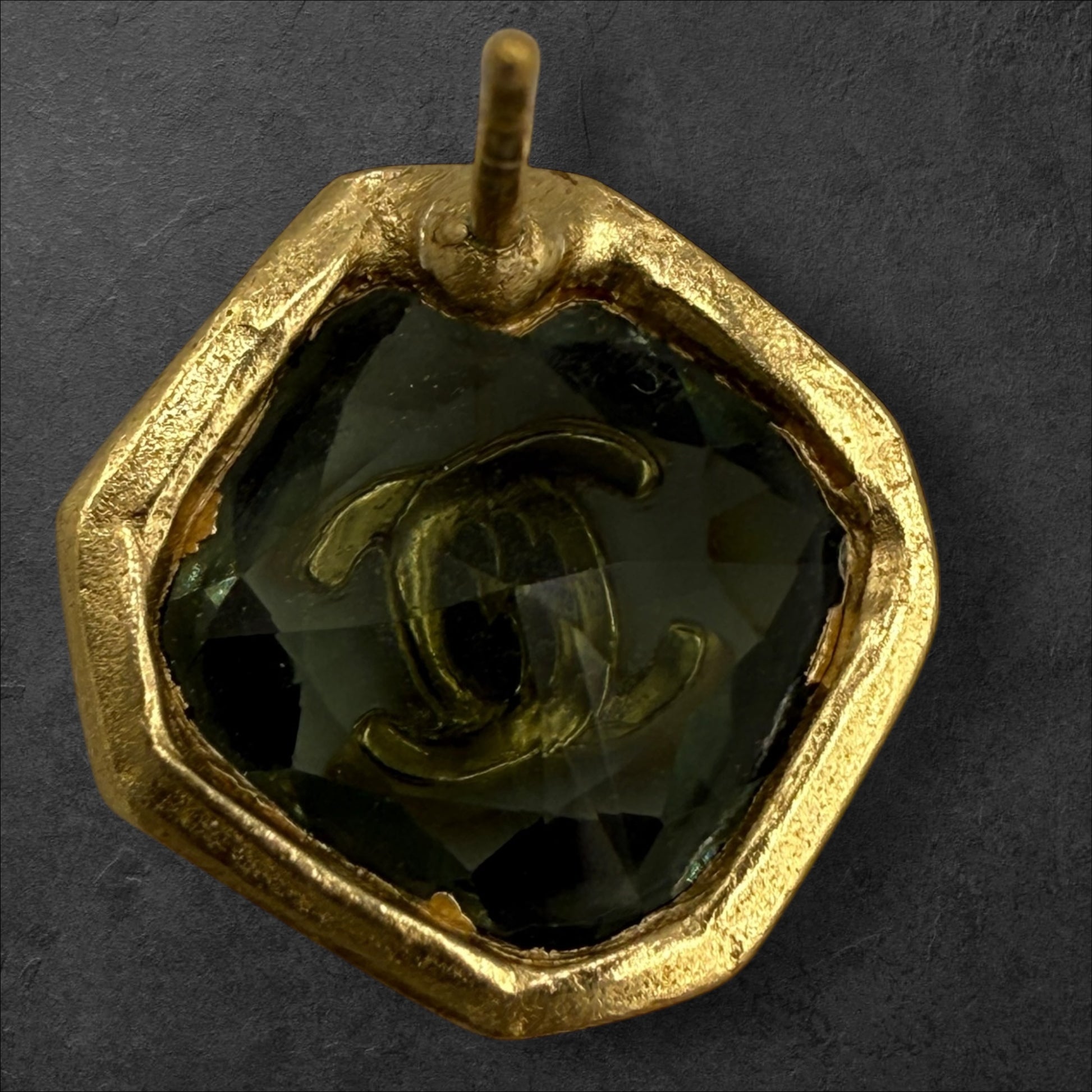 298. Chanel Coco Mark Stone Rhinestone Gold Plated CC Earrings