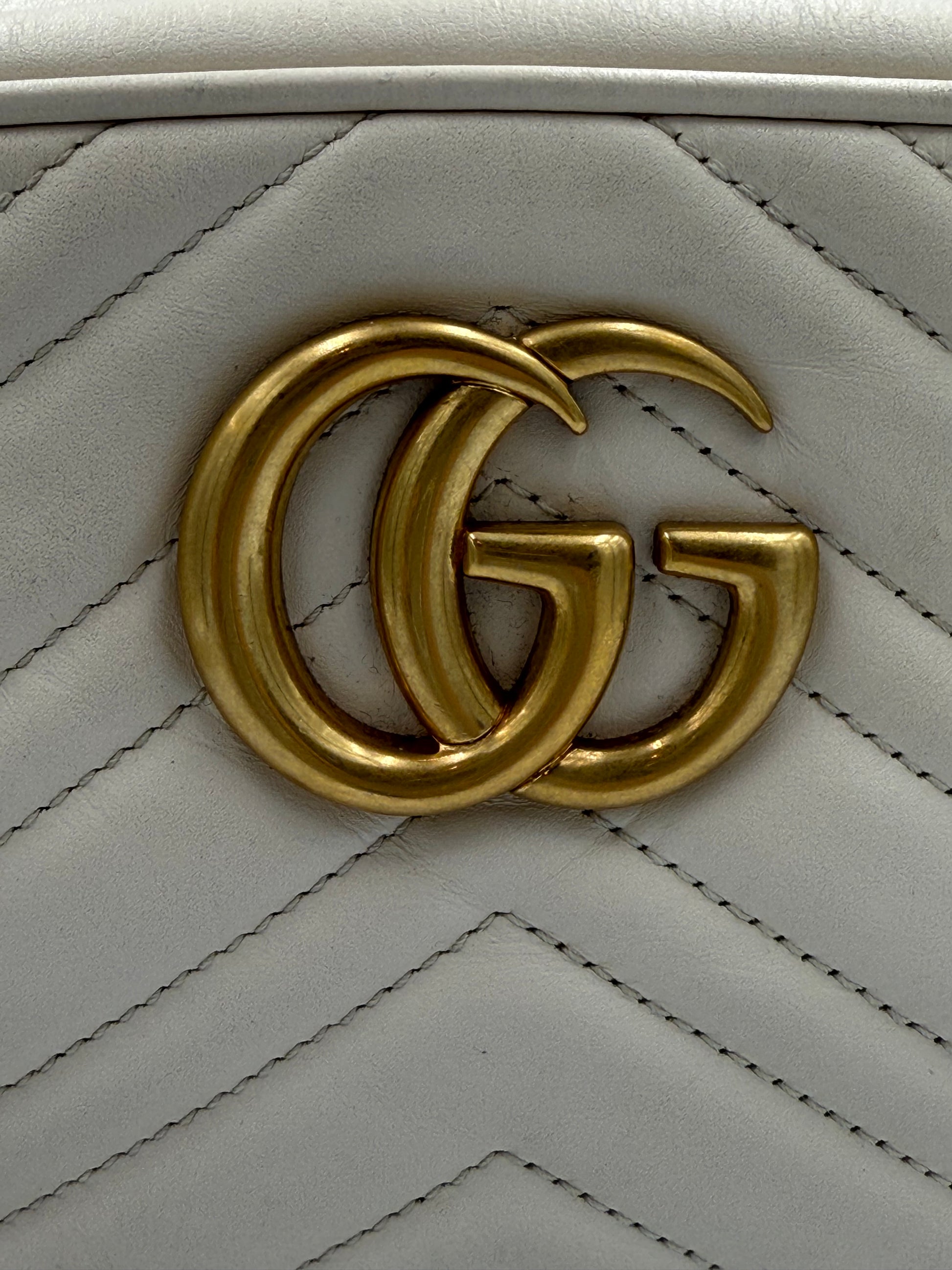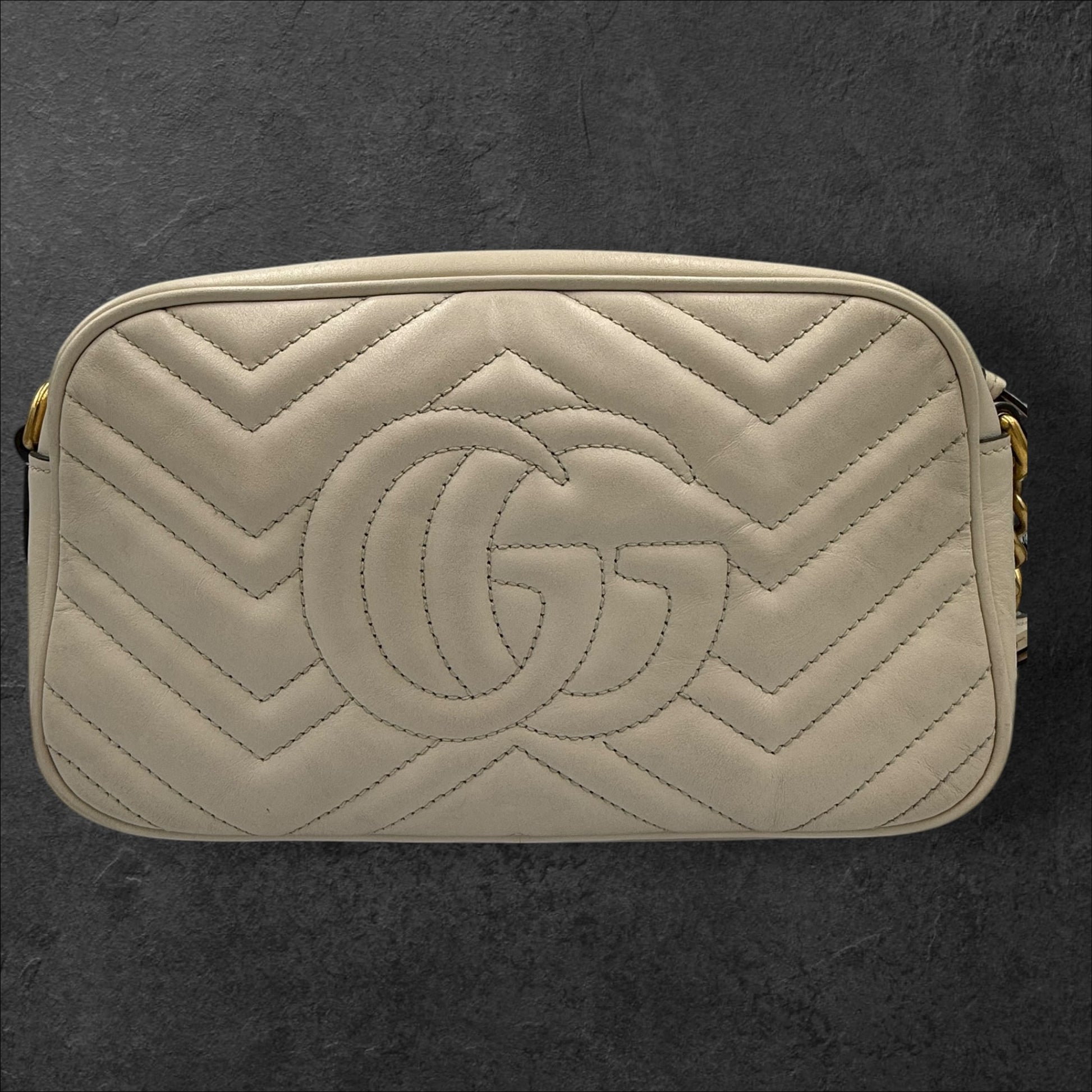 283. Gucci Cream Medium Marmont Quilted Leather Crossbody Camera Bag