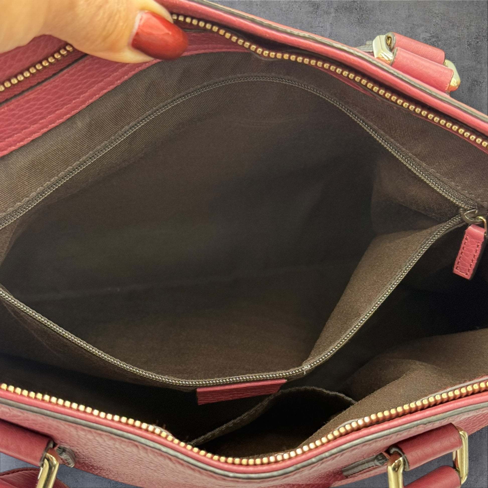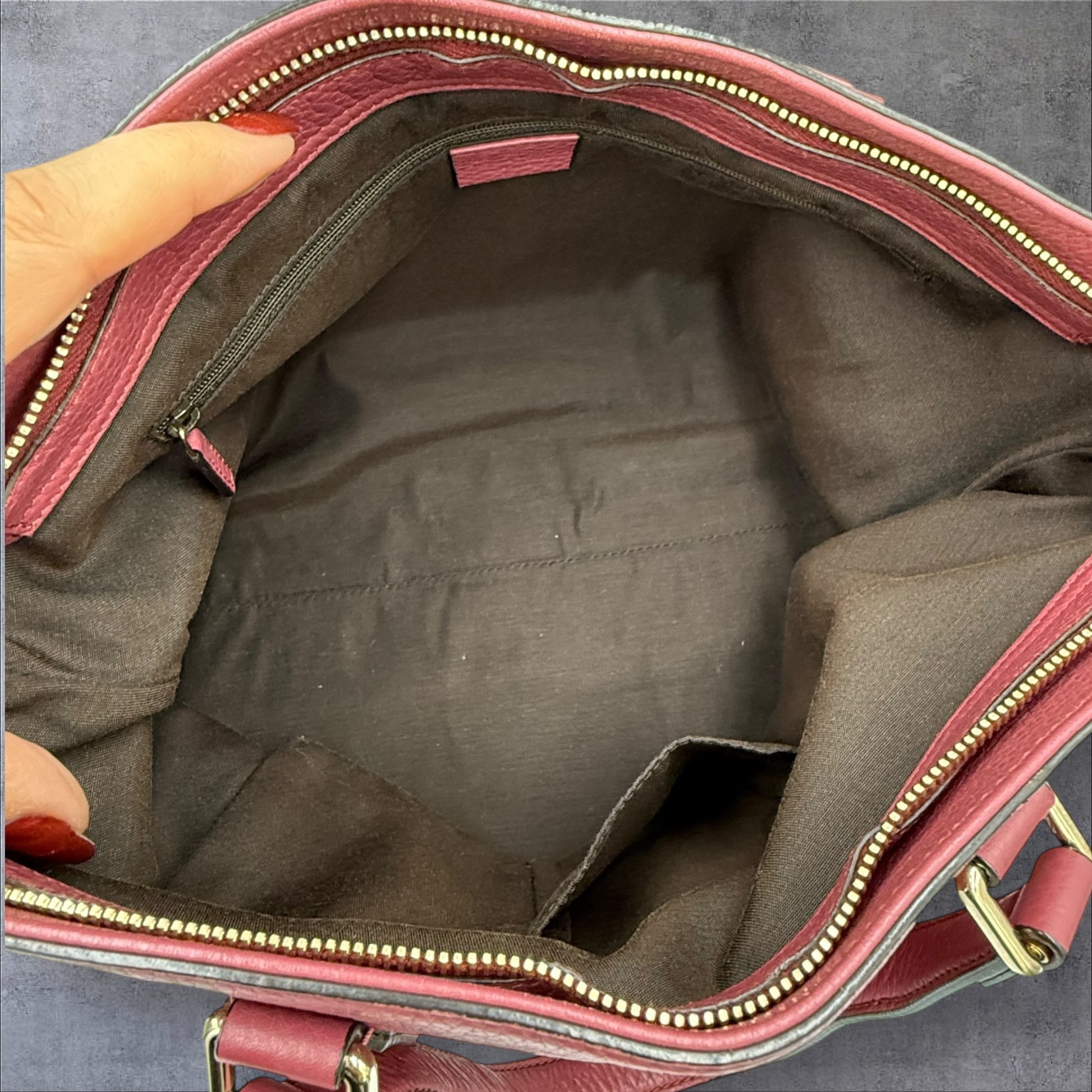 - Inside is clean with one zipper pocket along with a few pockets for phone etc.