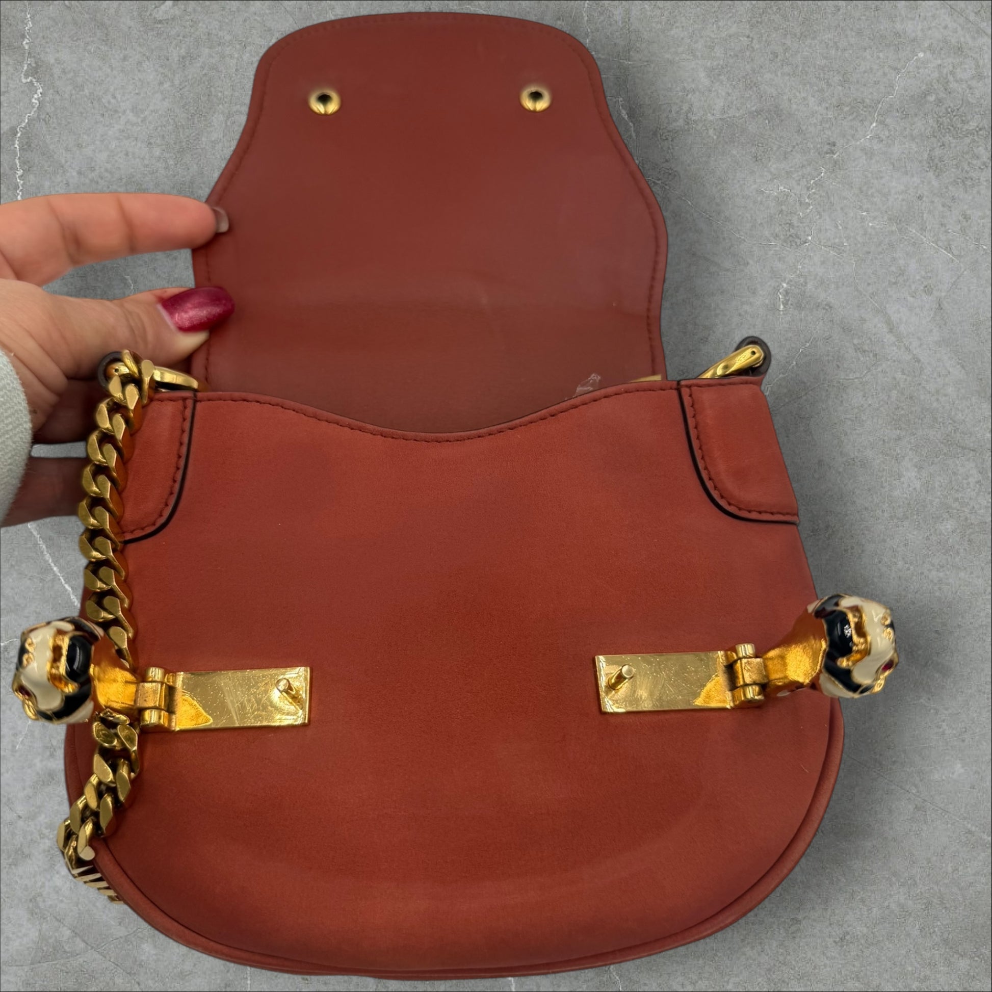 334. Gucci Tigrette Shoulder bag in Rust Suede with gold chain