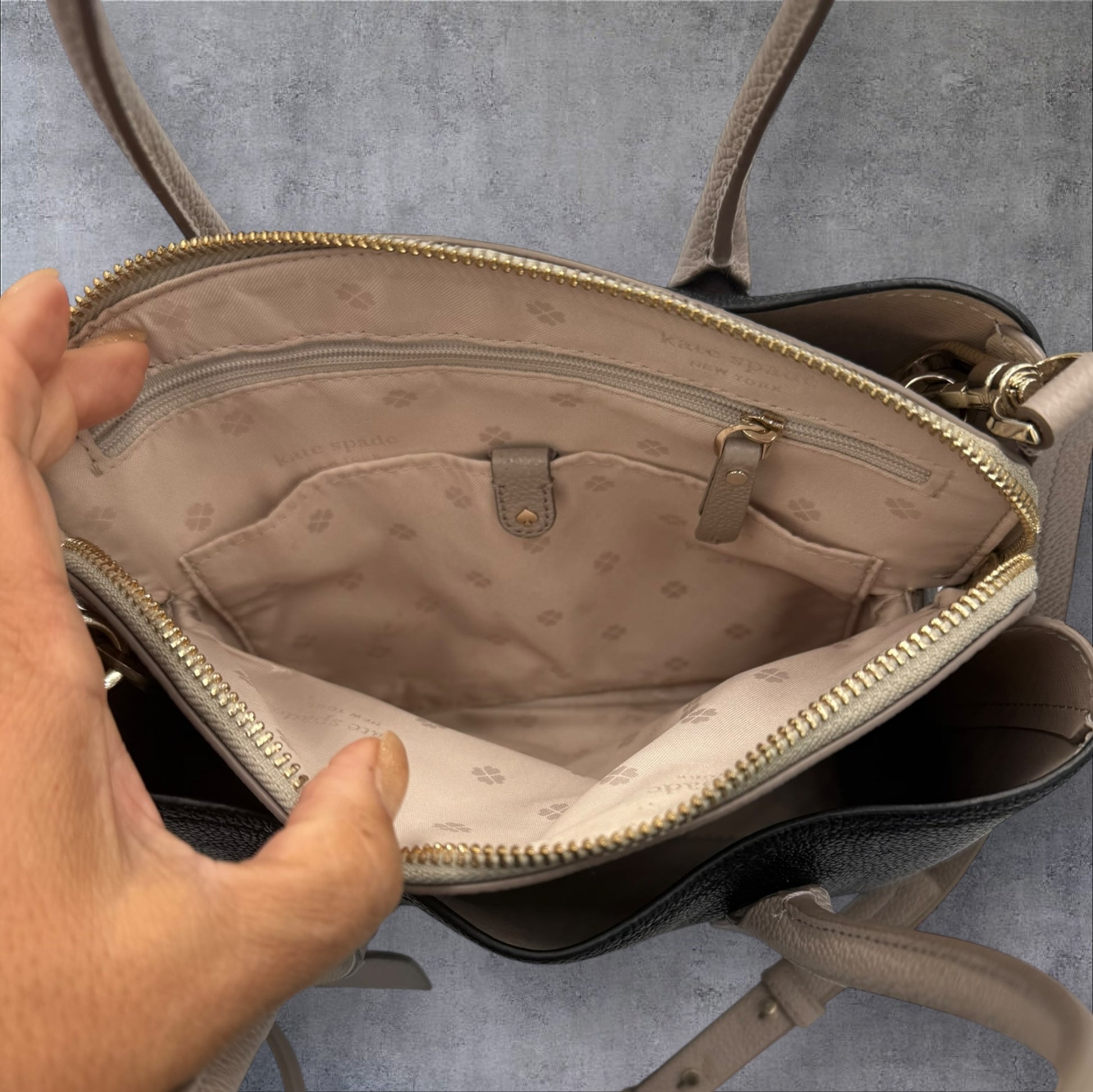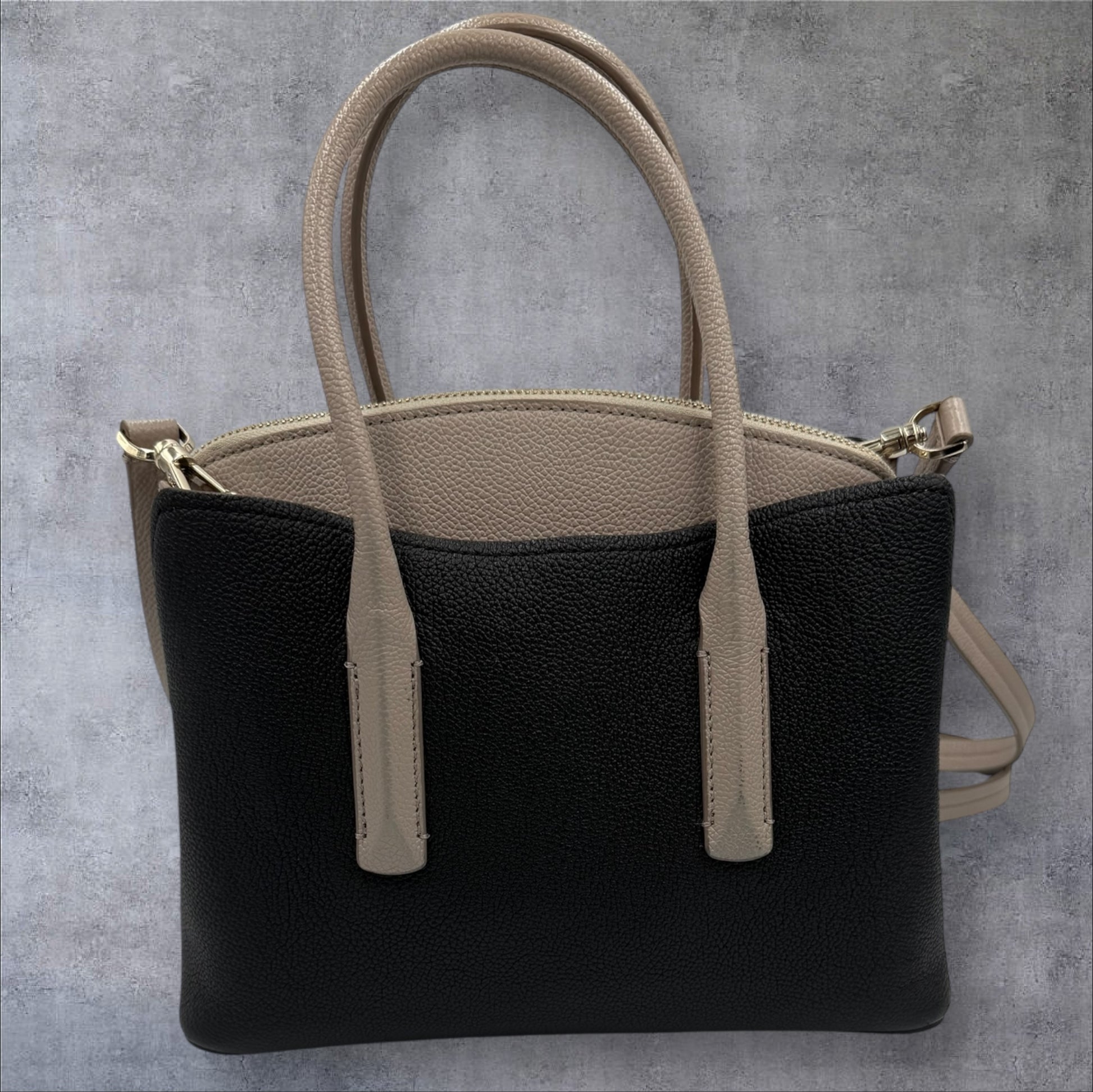 - Elegant Black and Taupe top handle satchel in excellent condition