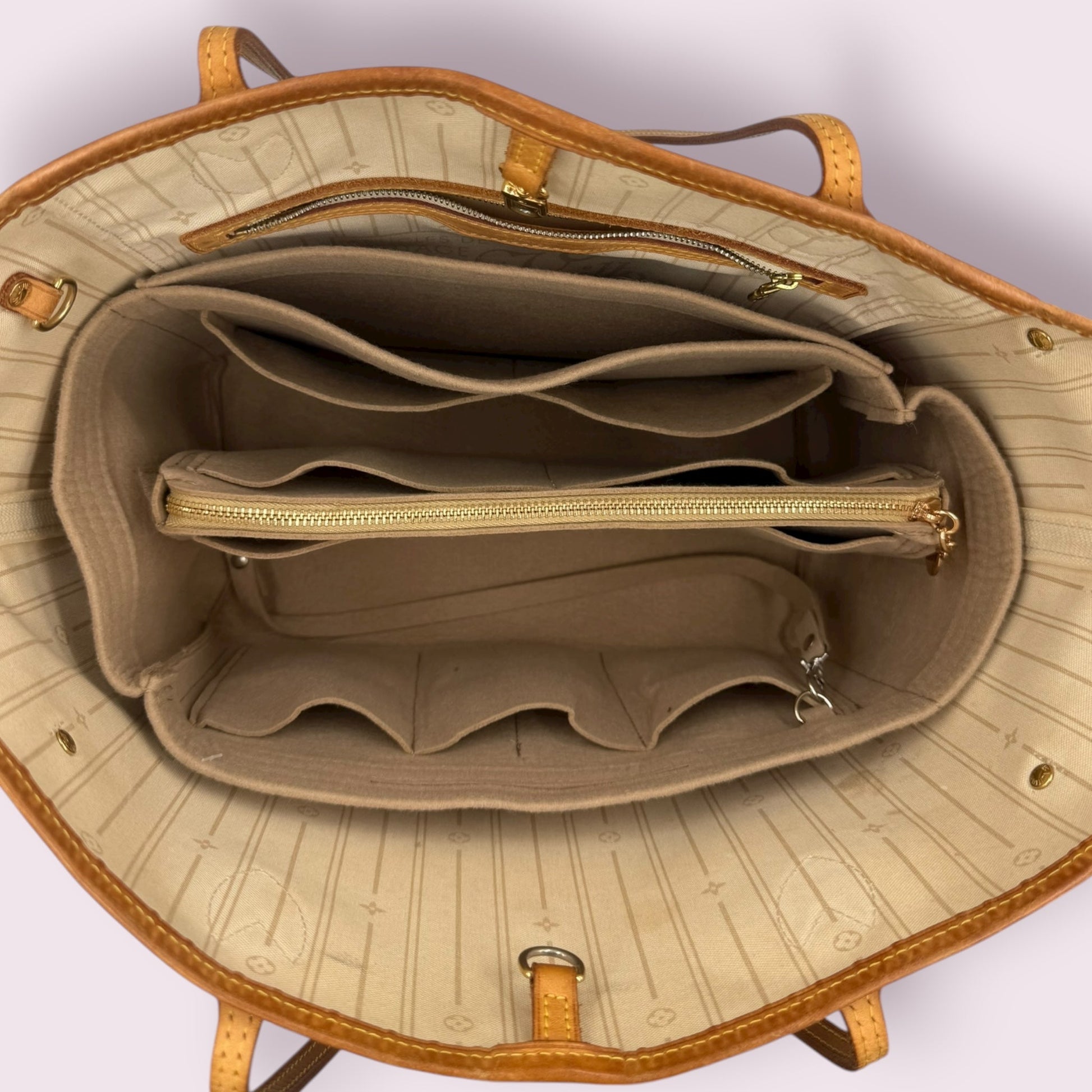 - Inside has some stains, but a new unbranded organizer insert in included