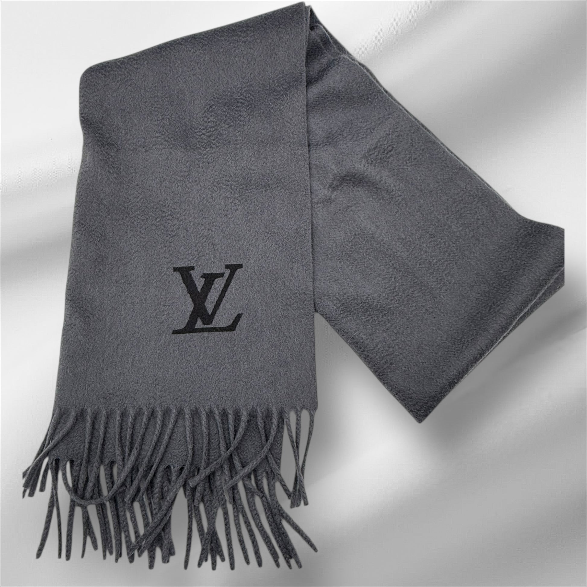 303. Louis Vuitton Grey Fringe 100% Cashmere Scarf